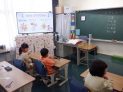 1年生は算数で時計の学習をしていました。今日のめあては、「とけいをよもう」でした。子供たちは教室にある時計を見ながら、学習を進めていました。時計が読めたら隣の友達と確かめ合っていました。 -