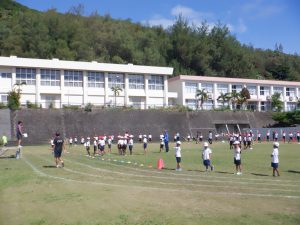 新着情報 運動会全体練習1回目 2025/09/16 1時間目に運動会の全体練習を行いました。今日は、入場行進と準備体操、開会式、南洋踊りの隊形を行いました。暑い中でしたが、みんな一生懸命先生の説明を聞いて取り組んでいました。みんなよく頑張っていました。