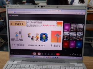 新着情報 安全指導 2025/10/01 今朝はオンラインで安全指導を行いました。担当の先生から「運動時の安全、交通安全、不審者対応」について話をしてもらいました。どの学年も、よい姿勢で話を聞いていました。オンラインが終わると、学級で普段の生活を振り返っていました。