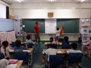 新着情報 1年生 算数~3つの数のひき算(繰り下がりのない)~ 2025/10/06 1年生は、算数で3つの数のひき算の学習をしていました。子供たちは、大きな百玉そろばんを使って、「9-3-4」の問題を考えていました。板書した内容は、ノートに丁寧に書いて、3つの数のひき算のやり方をよく理解していました。