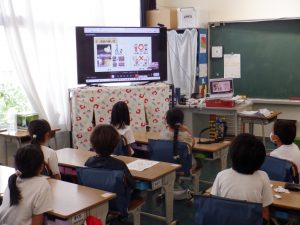 今朝、オンラインで安全指導を行いました。今日は、①安全な生活習慣 ②道具の使い方 ③土砂災害時の対応、3つのことについて担当の先生から指導しました。特に土砂災害時の対応については、新体育館に避難することなどを説明しました。子供たちは、真剣に話を聞いていました。