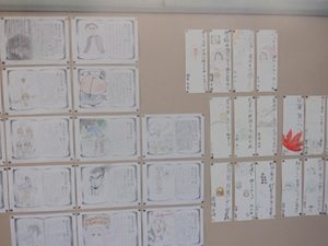 小笠原小学校では、秋にちなんで、子供たちが作成した「おすすめの本」カードを廊下に掲示しています。そのほかにも高学年は、俳句が掲示していたり、低学年は、学習したことを掲示したりしています。保護者の皆様に掲示物を見ていただきますと、子供たちの励みや意欲になります。お弁当をもってきていただける時など、時間のある時に観ていただくと幸いです。