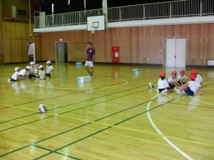 1年生は、体育「ボールゲーム」でボールけりゲームを行っていました。子供たちは、2チームに分かれて、的になる3つの箱にボールを蹴り当てます。当てた箱が相手側に近い方の勝ちになります。子供たちは、作戦を立てて夢中になってゲームを行っていました。ゲーム後には、ルールについて話し合い、改善することもあったようです。よく考え、よく動いて学習していました。