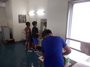 昼休みの後は、全校で清掃をします。どの学級も、みんなで協力して分担した場所をきれいにしています。廊下や階段、玄関もきれいになっています。