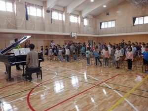 1年生から5年生の子供たちが、5時間目に令和8年度の入学式の練習を新体育館で行いました。子供たちは卒業式の練習をしているので、式での態度や歌などとてもよくできていました。新1年生に「ようこそ小笠原小学校に、入学おめでとう。小学校は楽しいよ。」という気持ちが伝わるような式になるとよいです。